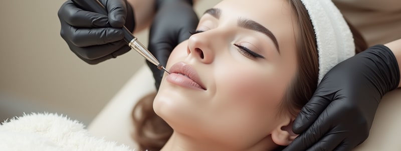 Zarte Pigmentierung in Aquarell- oder Lippenstifttechnik. Inkl. Beratung, Vorzeichnung, Betäubung & Nachbehandlung. Für gleichmäßige Farbe, natürliche Fülle & gepflegten Look.